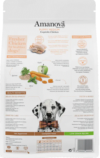 Amanova Puppy is een recept met speciaal gevormde brokjes voor kaken, zonder vleesmeel. De meest verse keuze voor een gezonde start van het leven.